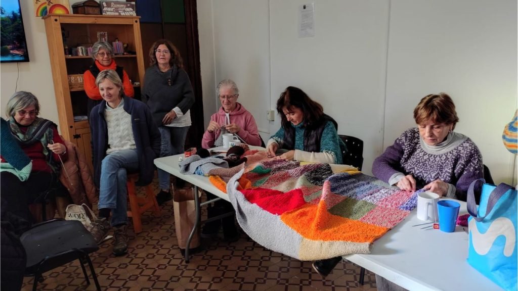 Como parte de esta propuesta, se realizan visitas a espacios culturales y comunitarios. En esta ocasión recibimos con mucha alegría a una de las alumnas del curso, que compartió una tarde de intercambio con nuestras tejedoras, en el marco del taller de tejido que se realiza cada sábado.